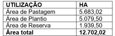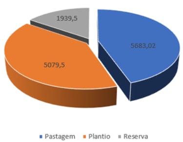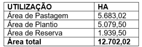 Questionados sobre a forma de ocupação e produção das propriedades, Nos foi informado dos seguintes valores: