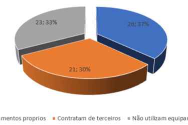 A propriedades utilizam de tratores, implementos, tratorito, trituradores e outros maquinários para facilitar o manejo no campo. Foi perguntado aos proprietários e arrendatários se eles possuem equipamentos próprios ou usavam de terceiros para o serviço. Das 70 propriedades, 26 tem equipamentos próprios, 21 contratam serviço de terceiro e 23 não utilizam de equipamento algum.
