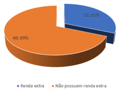 Num outro item foi perguntado se alguém da família, que morava na propriedade, desenvolvia alguma atividade fora da propriedade como forma de aumentar a renda da família. Das 70 famílias, 28 (x%) pessoas desenvolviam alguma atividade enquanto 42 (X%) viviam exclusivamente da renda interna.